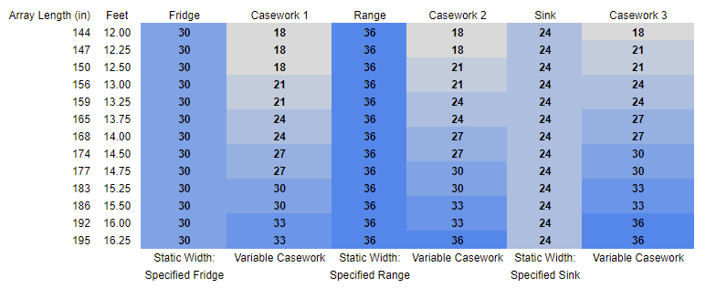 For this post I will talk about using a single linear array to solve for what should be hosted on a wall for a kitchen. This concept is infinitely expandable into all other room types, because of the generic nature of it. Essentially you, as a designer, would hard-code your design intent into dozens of homemade named lookup tables, and since that lookup table is a one-dimensional array, it will be computed and placed instantaneously and will full control to the designer.
