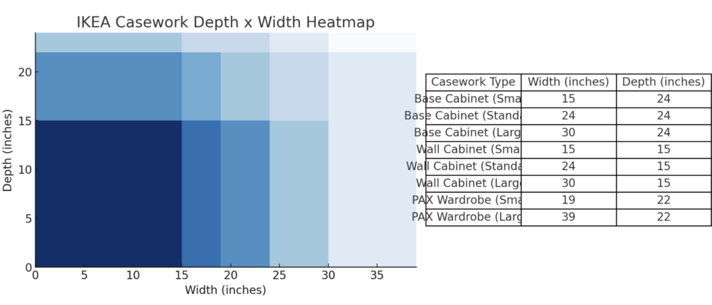 Doors require more clearance to be fully opened than drawers do. Perhaps the 1 dimensional array could take into account the need for depths to be variable. Like shrinking a kitchen down so small that it turns to one of those 2′ wide by 3′ deep fridges.