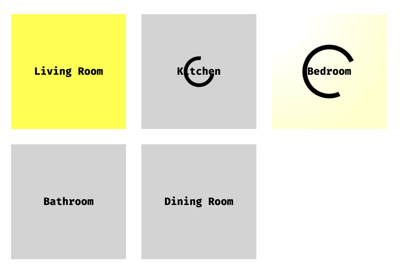 Behold: a virtual model of the switches in your house. Click a room to toggle the lights. Click a feature to toggle it individually.