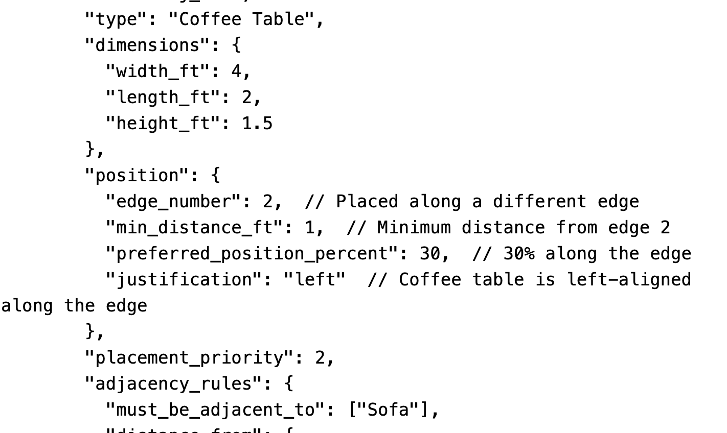 "justification": "left" // Coffee table is left-aligned along the edge