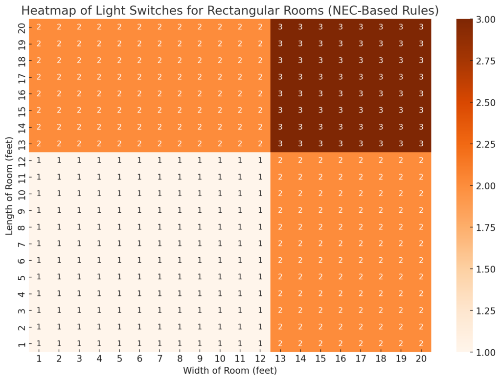 Lets perform the same analysis for light switches. I think there is a 13βx13β² mafia out there, where all of a sudden a room is so large it needs three times as many switches, yet is only 14% larger.